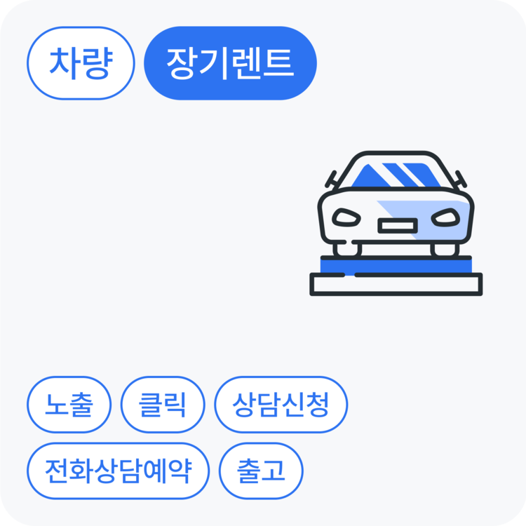 장기렌트에 관심이 있는 고객을 노출부터 출고까지 단계별로 확보할 수 있어요.