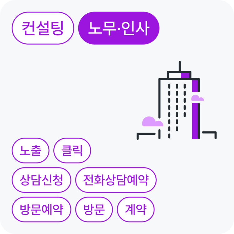 노무·인사 컨설팅에 관심이 있는 고객을 노출부터 계약까지 단계별로 확보할 수 있어요.